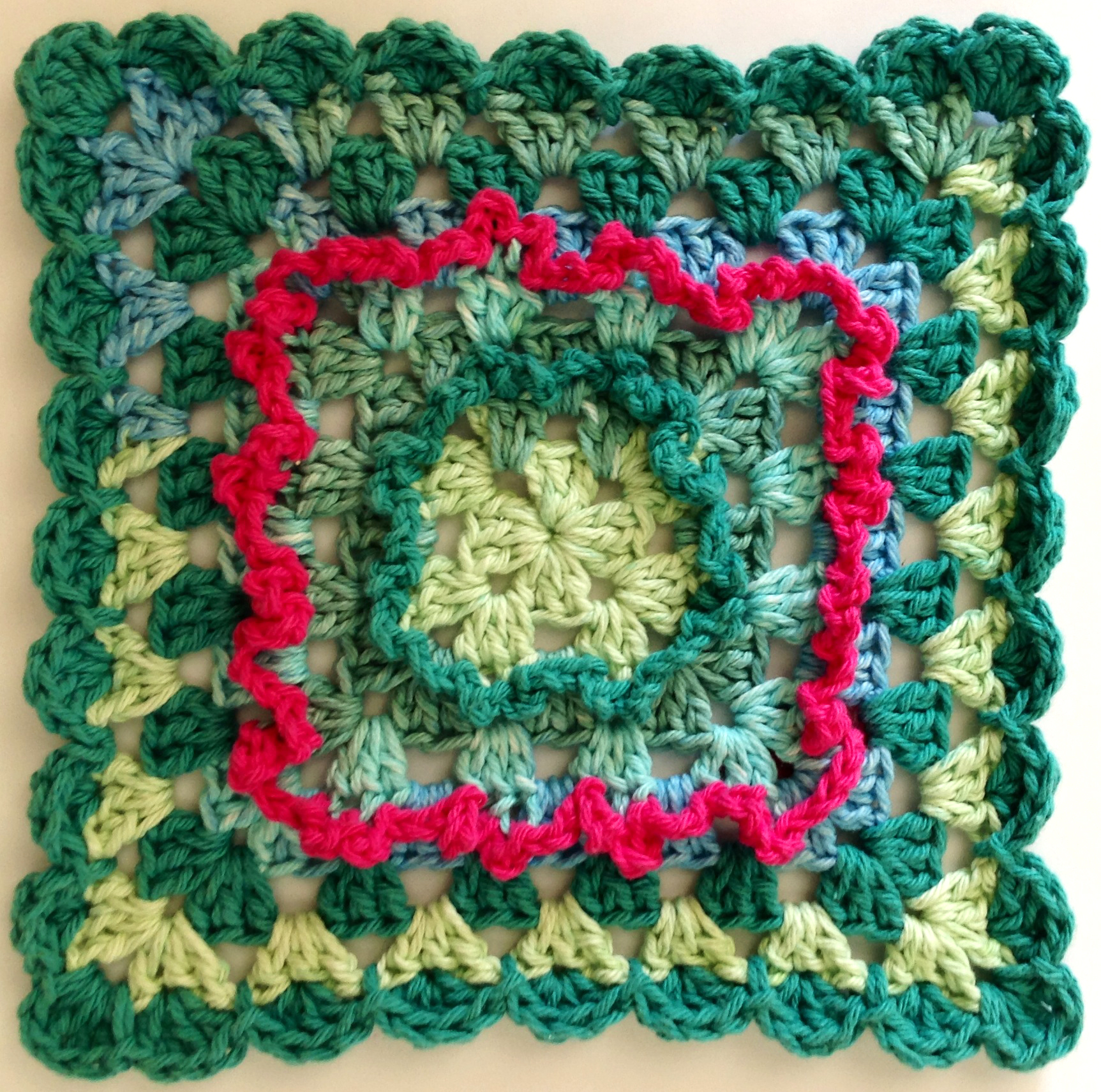 This is the Ruffled Granny Dishcloth – pattern #FD011. This free crochet pattern can be found here.